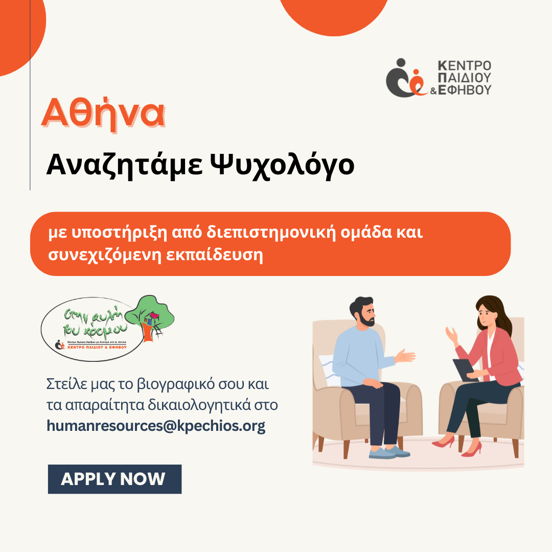 Το Κέντρο Παιδιού και Εφήβου προσφέρει ευκαιρίες καριέρας σε επαγγελματίες που ενδιαφέρονται να γίνουν μέλη δυναμικών ομάδων και να μάθουν μέσα σε ένα εξελισσόμενο περιβάλλον.
