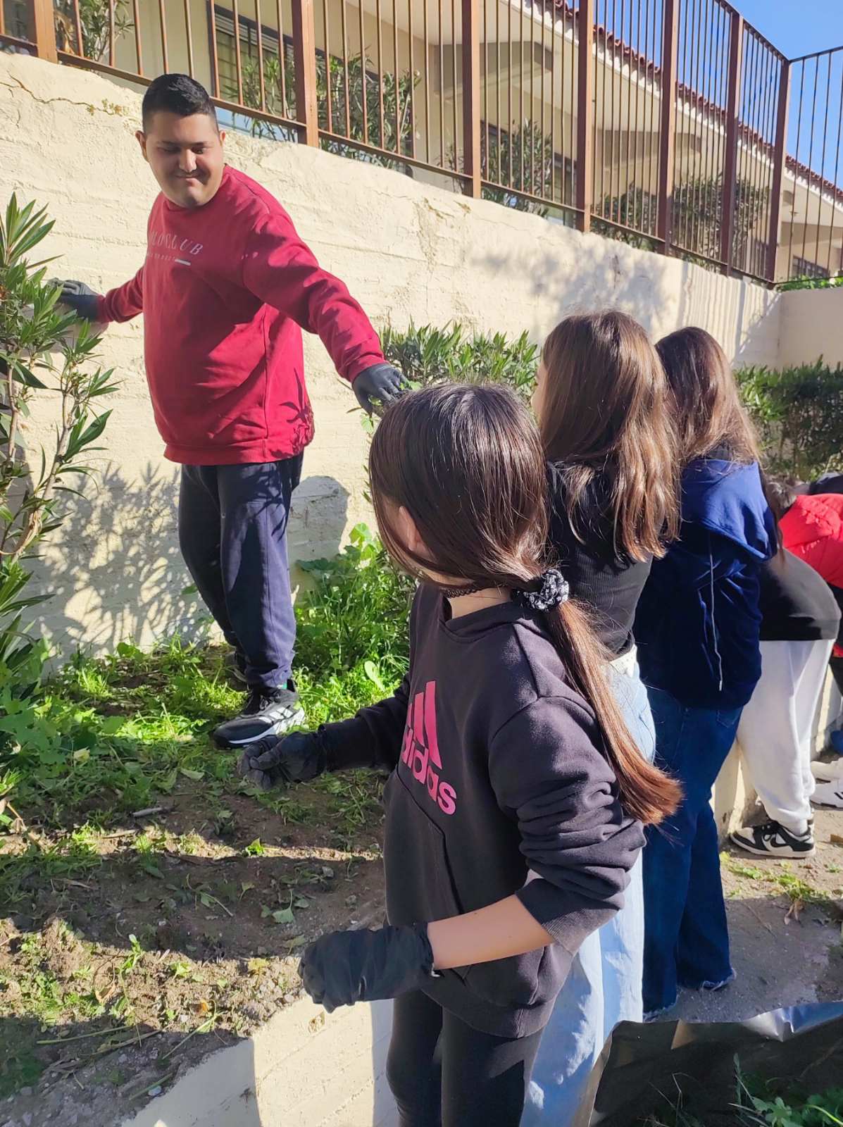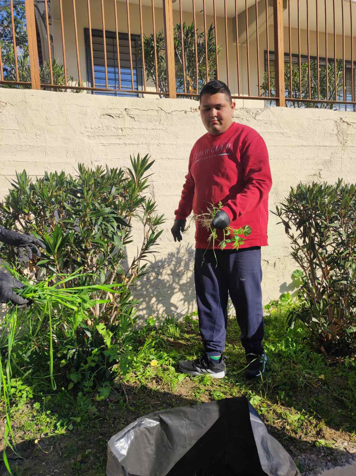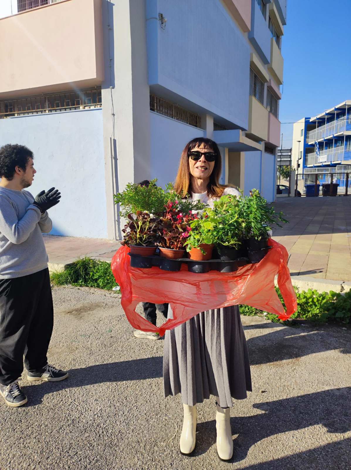 Στο Γυμνάσιο, η κοινή δράση είχε διαφορετικό χαρακτήρα αλλά τον ίδιο στόχο. Μαθητές και ωφελούμενοι φύτεψαν καλλωπιστικά φυτά στον χώρο του σχολείου. Έσκαψαν, φύτεψαν, πότισαν και φρόντισαν κάτι όλοι μαζί. Ένα μικρό αποτύπωμα συνεργασίας που μένει στον χώρο και υπενθυμίζει ότι η φροντίδα και η αποδοχή καλλιεργούνται — δεν επιβάλλονται.