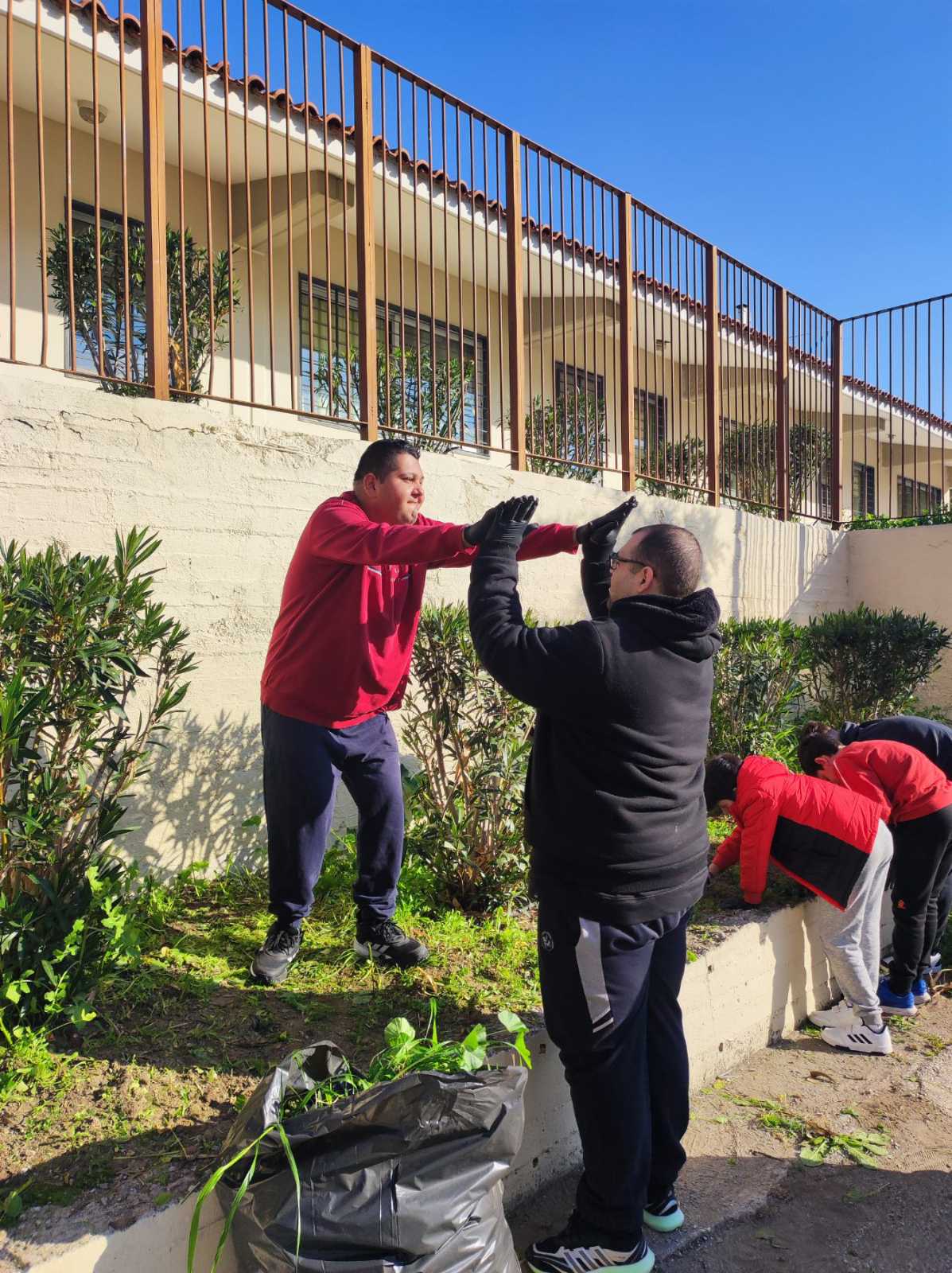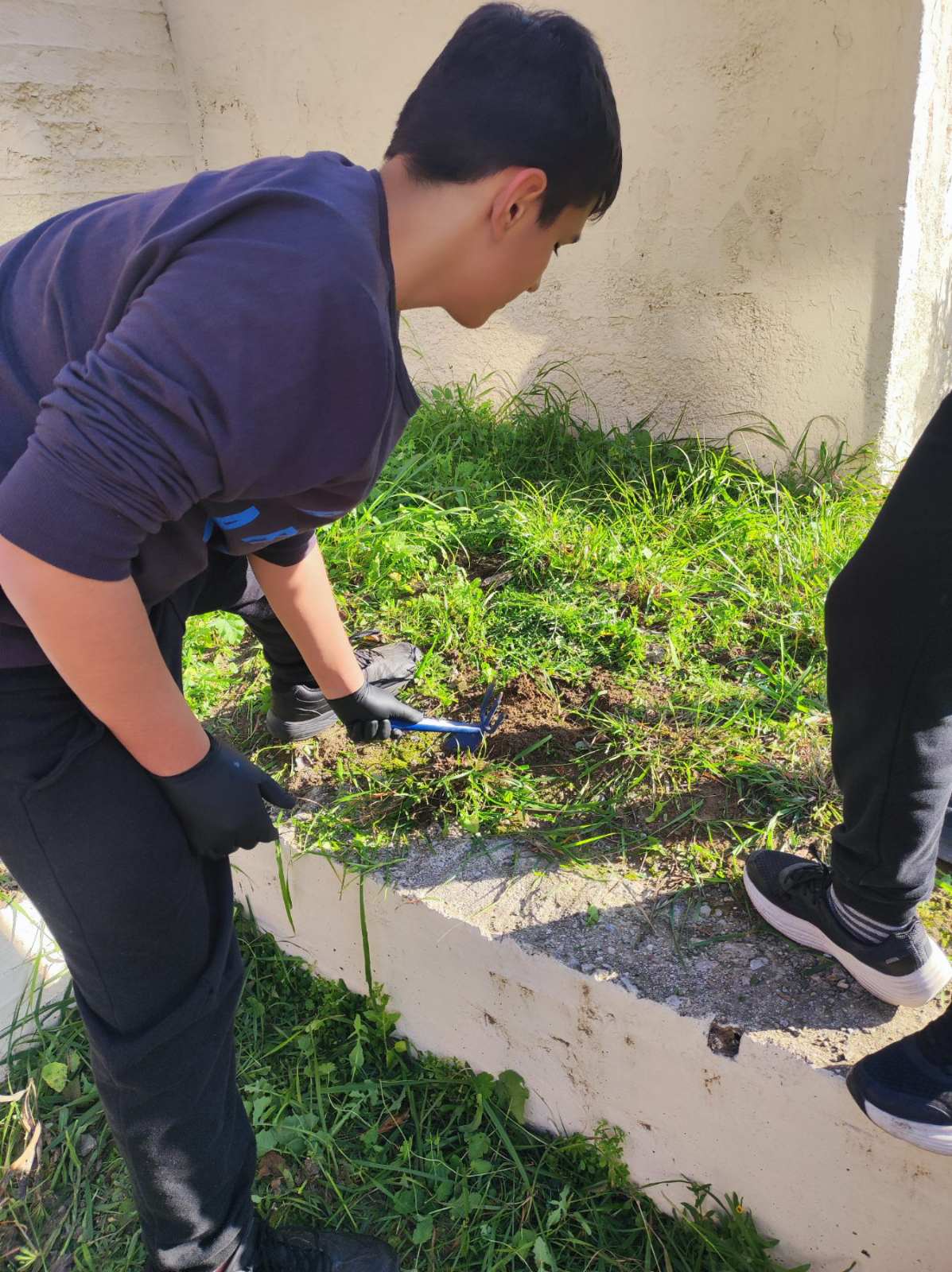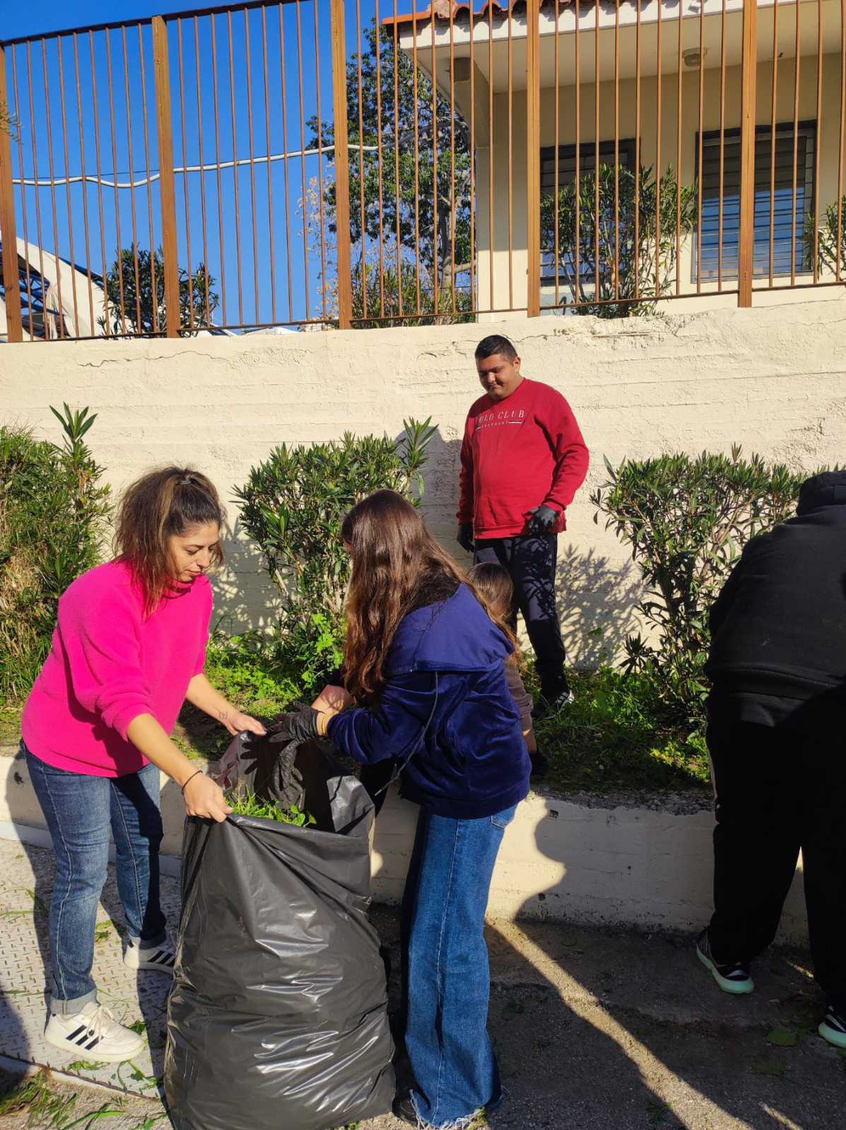 Στο Γυμνάσιο, η κοινή δράση είχε διαφορετικό χαρακτήρα αλλά τον ίδιο στόχο. Μαθητές και ωφελούμενοι φύτεψαν καλλωπιστικά φυτά στον χώρο του σχολείου. Έσκαψαν, φύτεψαν, πότισαν και φρόντισαν κάτι όλοι μαζί. Ένα μικρό αποτύπωμα συνεργασίας που μένει στον χώρο και υπενθυμίζει ότι η φροντίδα και η αποδοχή καλλιεργούνται — δεν επιβάλλονται.