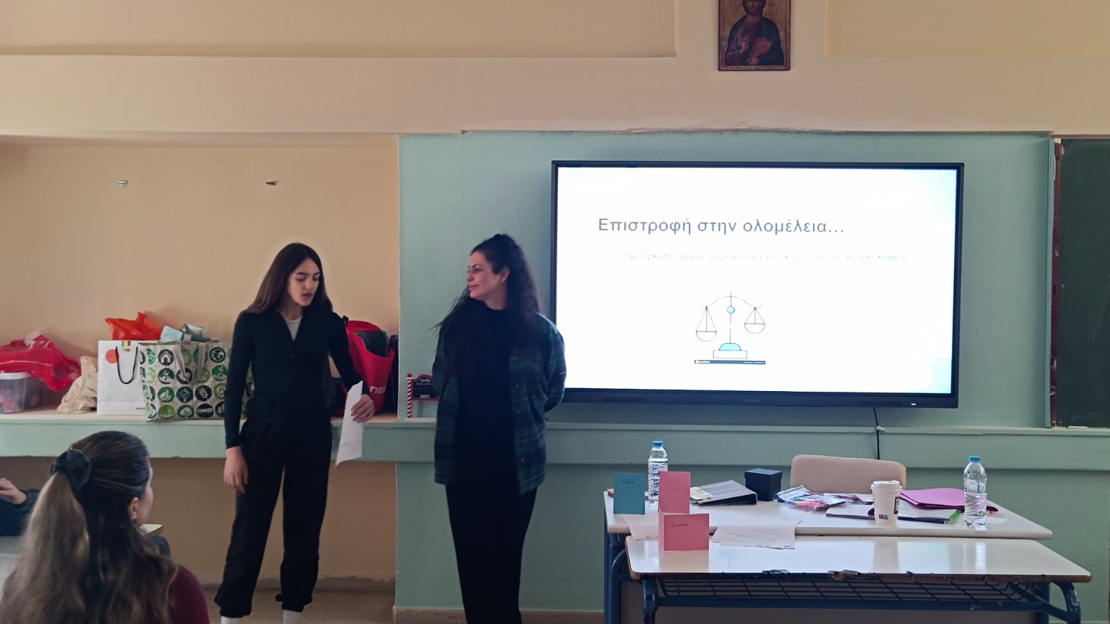 Οι μαθητές συμμετείχαν ενεργά, έκαναν ερωτήσεις, μοιράστηκαν σκέψεις και προβληματισμούς και ήρθαν σε επαφή με έννοιες που συχνά ακούν, αλλά σπάνια έχουν την ευκαιρία να επεξεργαστούν ουσιαστικά.