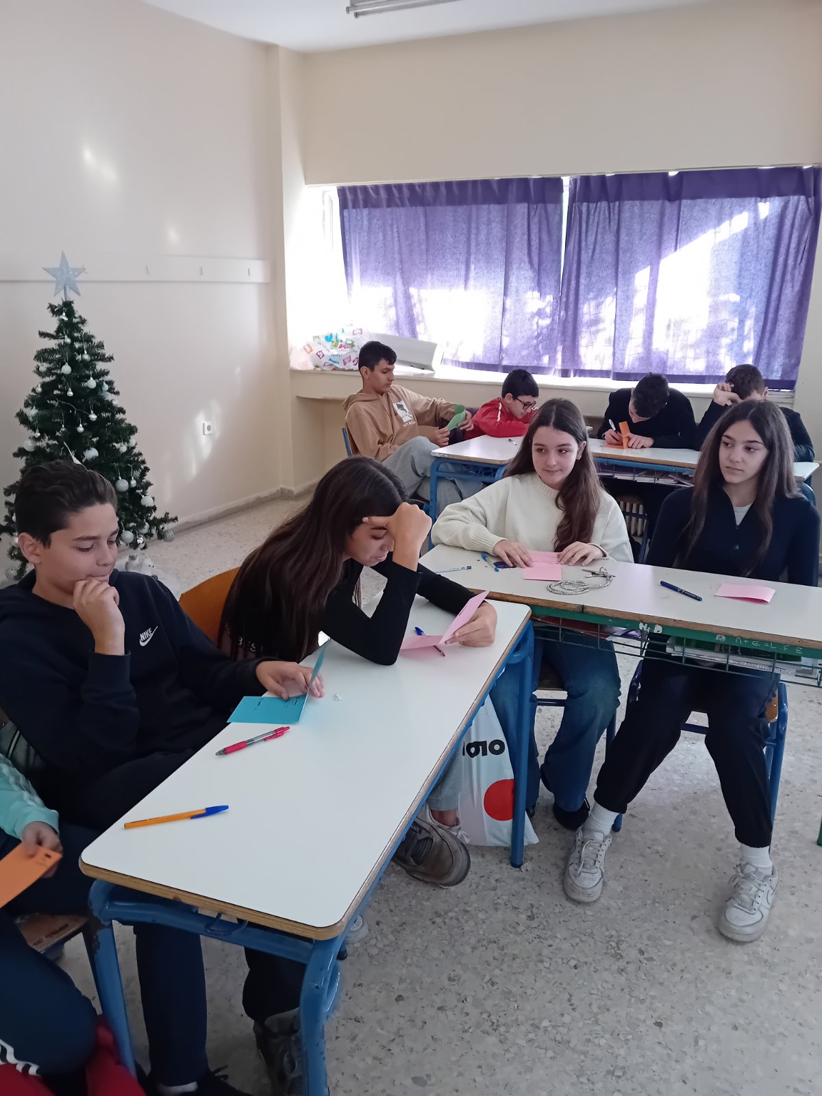 Στο Δημοτικό σχολείο, μαθητές και ωφελούμενοι του Ηλίανθου στόλισαν μαζί το χριστουγεννιάτικο δέντρο της τάξης και δημιούργησαν στολίδια. Μικρές κινήσεις συνεργασίας, χαμόγελα, ανταλλαγές ρόλων — μια απλή δραστηριότητα που όμως έφερε τους ανθρώπους κοντά.