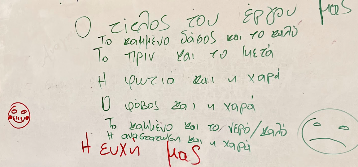 Η εμπειρία στο 9ο Δημοτικό Σχολείο Χίου ανέδειξε τη σημασία του χρόνου και της συνέχειας. Εκεί όπου αρχικά υπήρχε δυσκολία στη διάκριση σκέψεων και συναισθημάτων, σταδιακά άρχισε να χτίζεται κατανόηση και επίγνωση.