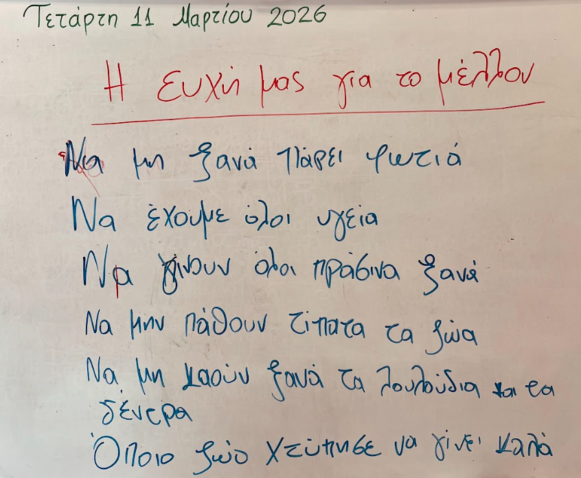Στο τέλος, οι μαθητές και οι μαθήτριες μοιράστηκαν τις ευχές τους: